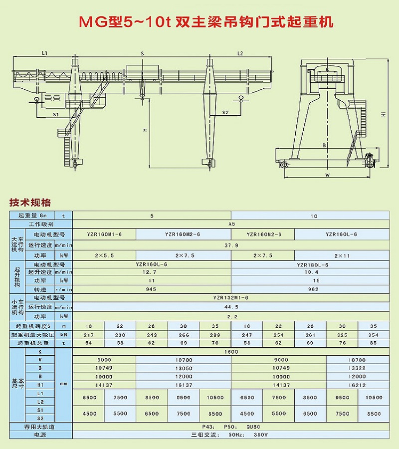 MG型5-10t雙主梁門(mén)式起重機(jī)
